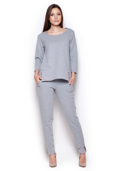 Szara Komfortowa Bluza z Rękawem 3/4 ze Złotymi Suwakami