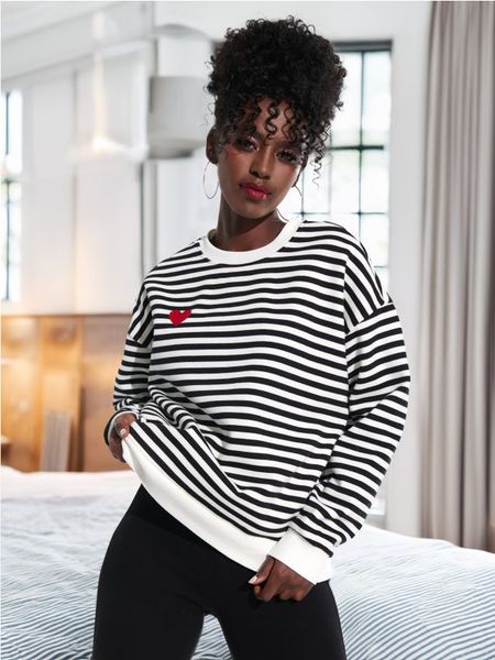 Sinsay – Bluza – wielobarwny – wzór w paski,haftowane serce,obniżona linia ramion,długie rękawy i dół wykończone ściągaczami,okrągły dekolt