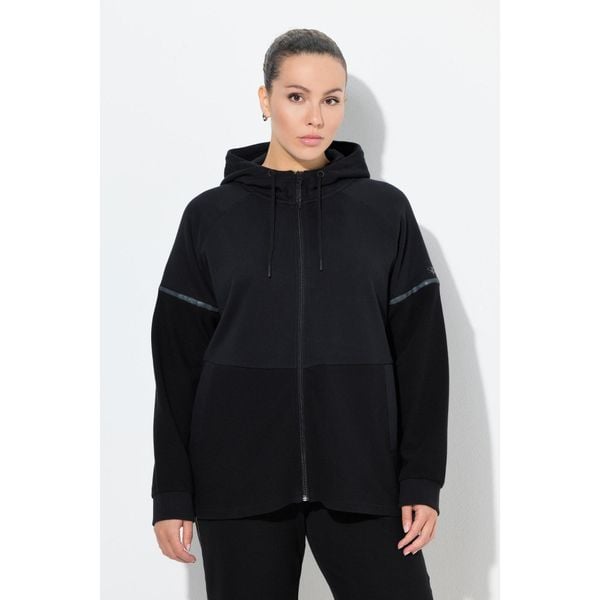 Plus size, Bluza, odblaskowe paski, kaptur, w połowie z eleganckiego weluru ottoman Ocena: Tags: Kobieta Odzież damska Bluzy damskie Kolor: Czarny Rozmiar: Przeznaczenie: female Marka: ULLA POPKEN