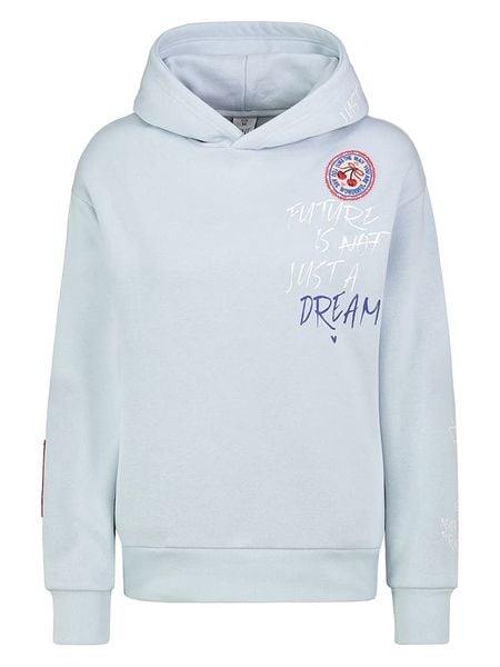 – z dodatkiem bawełny- kaptur: tak- ściągacz: zakończenia rękawów, dolny brzeg- krój: luźny- kieszenie: wpuszczane- nadruk: graficzny- look: jednokolorowy