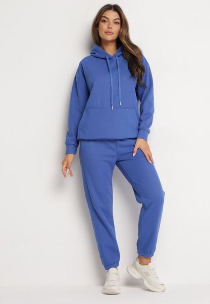Niebieski Bawełniany Komplet Dresowy z Bluzą i Spodniami Zansira