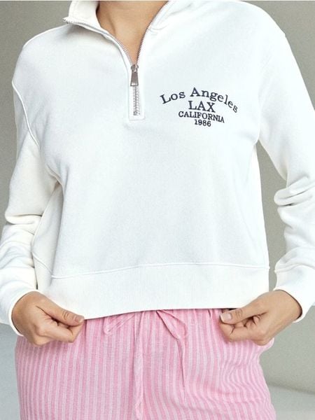 Sinsay – Bluza polo z haftowanym napisem – kremowy –