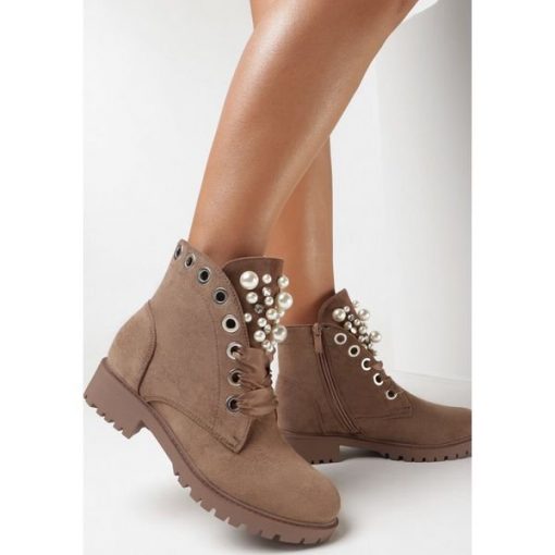 Botki Briogen z okrągłym noskiem i zapięciem na zamek błyskawiczny. Osadzone na płaskim obcasie z grubszą podeszwą i bieżnikiem. Cholewka za kostkę, dodatkowo wiązana na szerokie sznurówki. Wykonane z ekozamszu. Zdobione biżuteryjnymi wstawkami w kształcie pereł i cyrkonii. Nieocieplane. Rewelacyjnie komponują się z legginsami oraz bluzką z łańcuszkiem. Zapoznaj się z tabelą – polecamy kupić […]