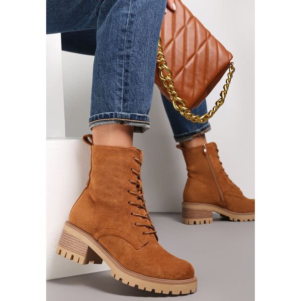 Botki Ditra wykonane gładkiego ekozamszu, z wysoką cholewką za kosktę. Dekorowane delikatnymi przeszyciami w pasującym kolorze. Sznurowane, dodatkowo zasuwane na zamek błyskawiczny z boku. Model osadzony na niskim obcasie oraz podeszwie ze stabilizującym bieżnikiem. Nieocieplane. Prezentują się stylowo w towarzystwie klasycznego trencza lub pikowanej kurtki!