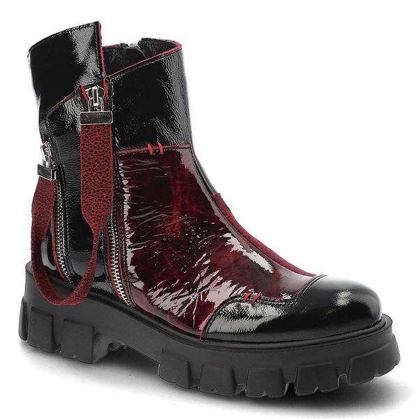 Bordowe Botki Maciejka Modne Skórzane Buty Jesienne