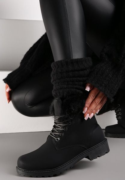 Czarne Botki z Futerkiem i Sznurowaniem Tiarah