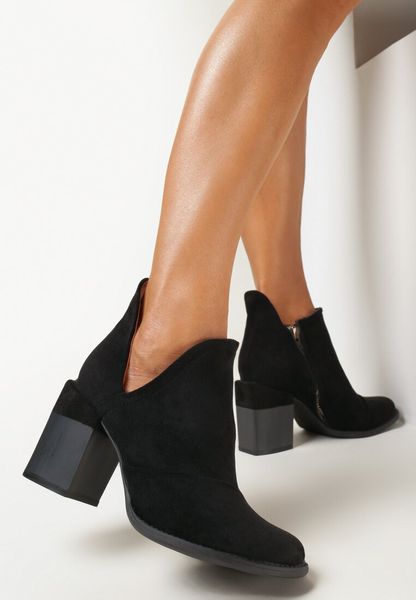 Czarne Botki z Wycięciem i Geometrycznym Słupkiem Gizaaf