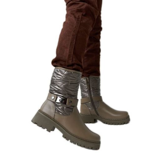 Zielone ocieplane botki z ozdobnym paskiem Lido