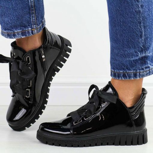 Czarne skórzane lakierowane botki damskie na traperze Filippo Dbt3197/25