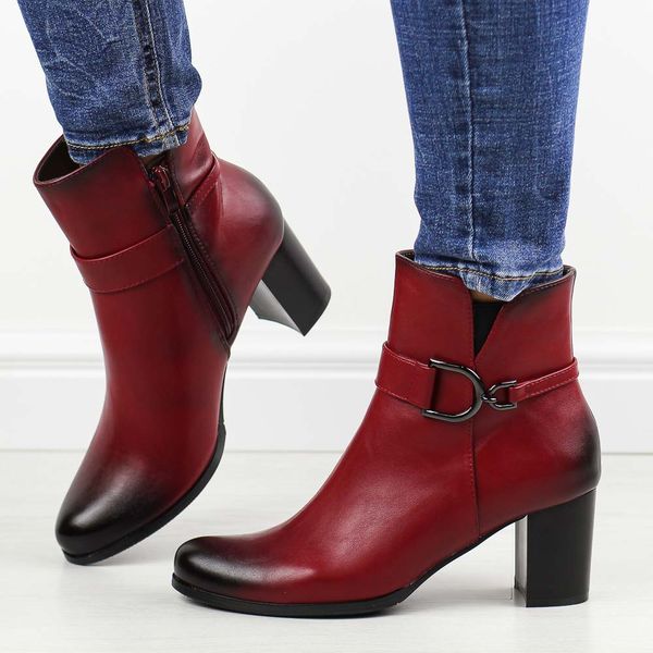 Czerwone zimowe botki damskie na słupku M.Daszyński Sa125-32