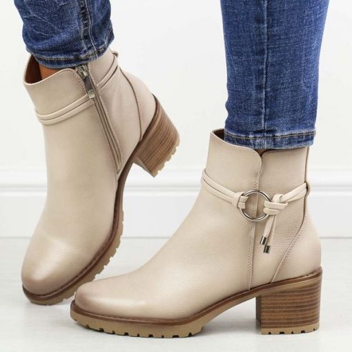 Beżowe botki damskie na obcasie Potocki 12527