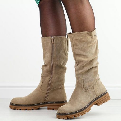 Beżowe wysokie botki damskie na traperze M.Daszyński Sa259-3