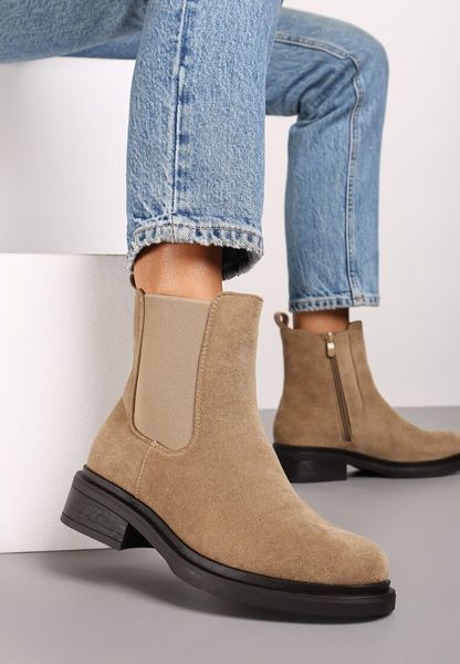 Ciemnobeżowe Klasyczne Botki w Stylu Sztybletów z Imitacji Zamszu Kaivina