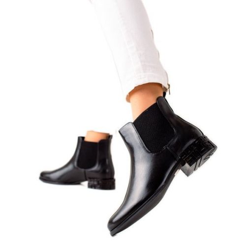 czarne botki botki na średnim obcasie botki ze sklepu butymodne.pl botki bez obcasa botki bez zapięcia odzież, obuwie, dodatki damskie butymodne.pl