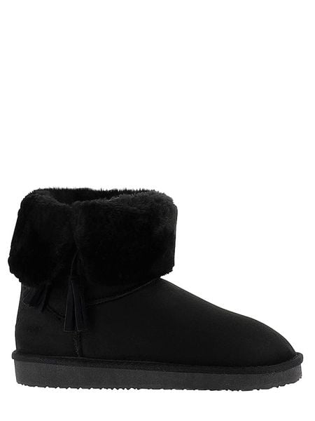 – wodoodporny materiał wierzchni – imitacja weluru („Microsuede”)- zapięcie: bez- noski: okrągłe- detale: naszywka z logo, obszycie ze sztucznego futerka, frędzelki- wyściółka: ogrzewający materiał tekstylny- podeszwa: profilowana- kolor producenta: Black