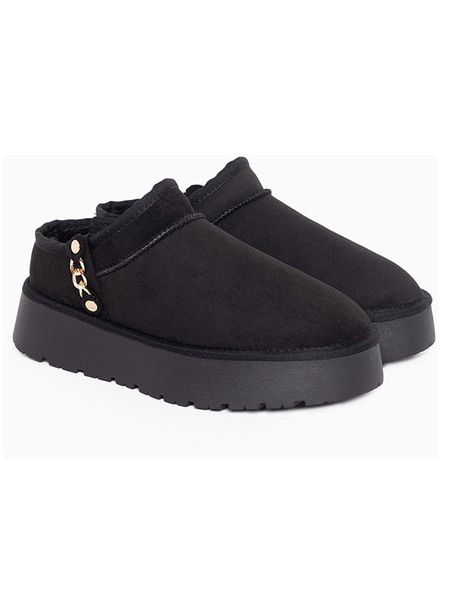 – wodoodporny materiał wierzchni o wyglądzie skóry welurowej („Microsuede”)- zapięcie: bez- noski: zaokrąglone- zapiętki: wzmocnione- wyściółka: ciepła- detale: metalicznie błyszczące elementy, ozdobne i formujące szwy- forma obcasa: platforma- podeszwa: antypoślizgowa