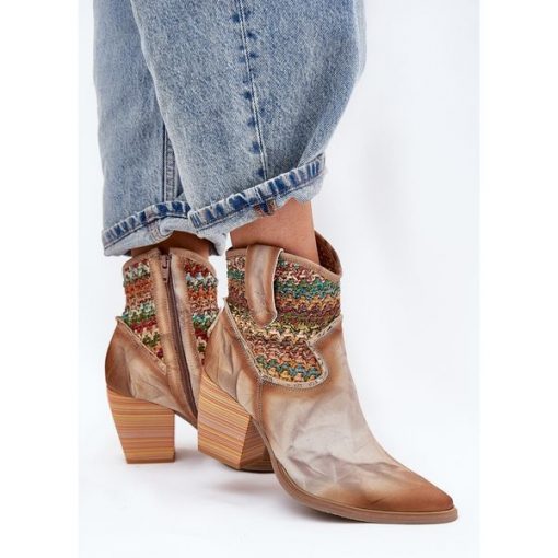 Skórzane Botki Kowbojki Na Słupku Z Ozdobną Plecionką Maciejka 06810-29 Multikolor wielokolorowe