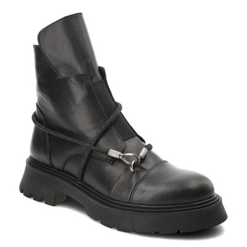 Botki BOMBONELLA – 177.1551 S.A 08 T SYH to wyjątkowy model obuwia, który łączy nowoczesny styl z industrialnym charakterem. Wykonane z wysokiej jakości czarnej skóry naturalnej licowej, wyróżniają się nietuzinkowym designem oraz ozdobnym, sznurowanym elementem z metalowymi detalami. Solidna podeszwa z grubym bieżnikiem zapewnia wygodę i stabilność, idealną na chłodniejsze dni. Botki BOMBONELLA – 177.1551 S.A […]