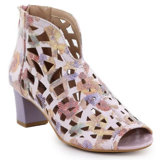 M. DASZYŃSKI Botki damskie ażurowe open toe w kwiaty M.Daszyński MR1954-15 różowe