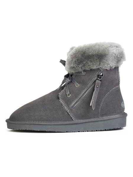 – skóra welurowa- wyściółka: ogrzewająca wełna owcza i materiał tekstylny- zapięcie: sznurowanie- noski: zaokrąglone- detale: ozdobne przeszycia oraz suwak, ozdobny zamek- dookoła gumowanie- podeszwa: antypoślizgowa