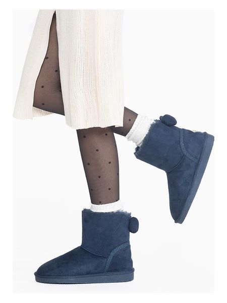 – wodoodporny materiał wierzchni o wyglądzie skóry welurowej („Microsuede”)- zapięcie: bez- noski: zaokrąglone- detale: ozdobne i formujące szwy- wyściółka: ciepła- podeszwa: antypoślizgowa