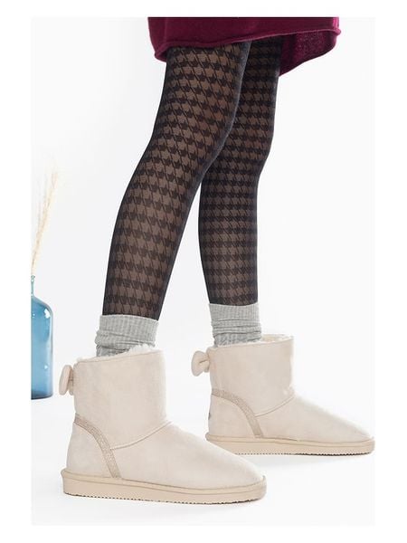 – wodoodporny materiał wierzchni o wyglądzie skóry welurowej („Microsuede”)- zapięcie: bez- noski: zaokrąglone- detale: ozdobne i formujące szwy- zapiętki: wzmocnione- wyściółka: ciepła- podeszwa: antypoślizgowa