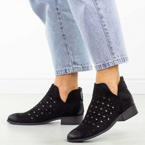 Czarne ażurowe zamszowe botki damskie Potocki 12664