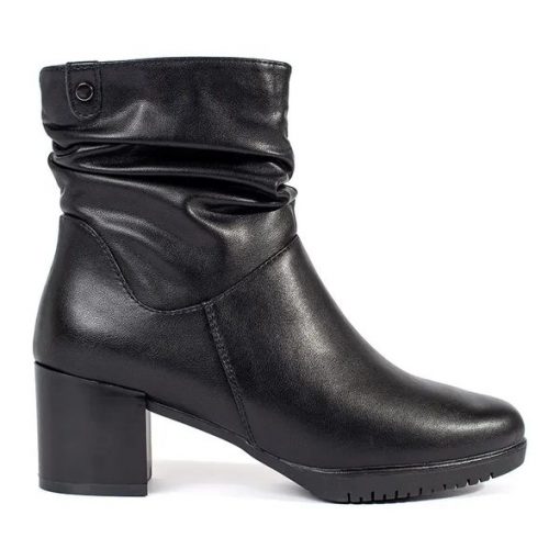 Czarne skórzane botki damskie na słupku z marszczoną cholewką Sergio Leone