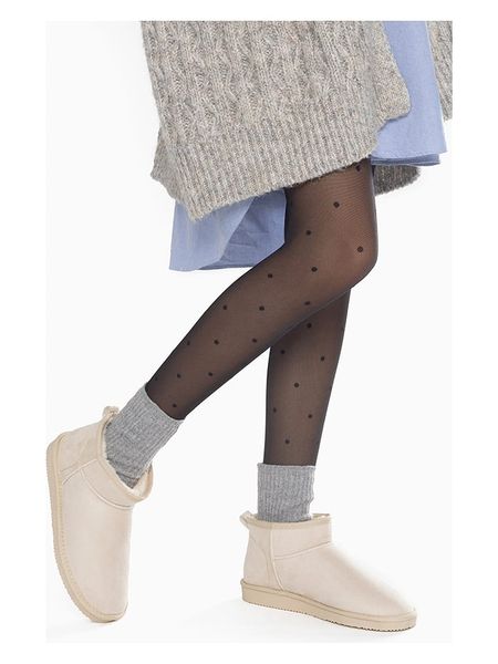 – wodoodporny materiał wierzchni o wyglądzie skóry welurowej („Microsuede”)- zapięcie: bez- noski: zaokrąglone- detale: ozdobne i formujące szwy- zapiętki: wzmocnione- wyściółka: ciepła- podeszwa: antypoślizgowa
