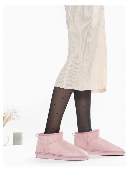 – wodoodporny materiał wierzchni o wyglądzie skóry welurowej („Microsuede”)- zapięcie: bez- noski: zaokrąglone- detale: ozdobne i formujące szwy- zapiętki: wzmocnione- wyściółka: ciepła- podeszwa: antypoślizgowa