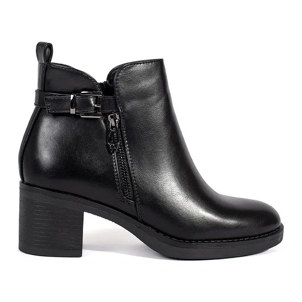Czarne botki damskie na słupku z ozdobnym zamkiem i klamrą. Sprawdź na butymodne.pl! Botki damskie od Innej marki – must-have sezonu w świetnej cenie. Promocje oraz darmowa dostawa.