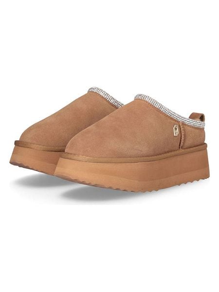 – zapięcie: bez- praktyczna szlufka ułatwiająca zakładanie- noski: zaokrąglone- noski i zapiętki: wzmocnione- detale: błyszczące kamyczki- forma obcasa: platforma- podeszwa: lekko profilowana