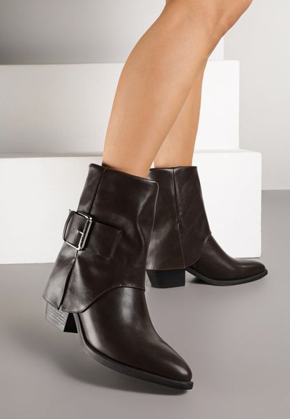 Brązowe Botki na Stożku Ozdobione Klamrą i Wywiniętą Cholewką Latarose