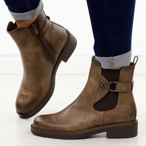 Brązowe płaskie botki damskie M.Daszyński sa252-7
