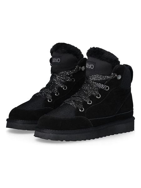 – materiał wierzchni ze skórzanymi wstawkami- zapięcie: sznurowanie z haczykami- praktyczna szlufka ułatwiająca zakładanie- noski: zaokrąglone- noski i zapiętki: wzmocnione- detale: obszycie ze sztucznego futerka- dookoła gumowanie- podeszwa: lekko profilowana