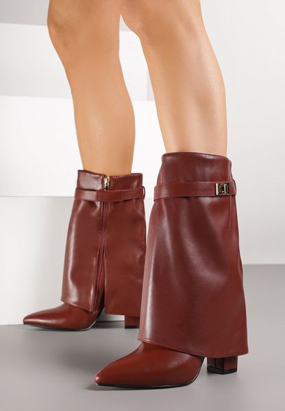 Bordowe Botki na Słupku z Cholewką Imitującą Nogawkę i Aplikacją Tulmarea