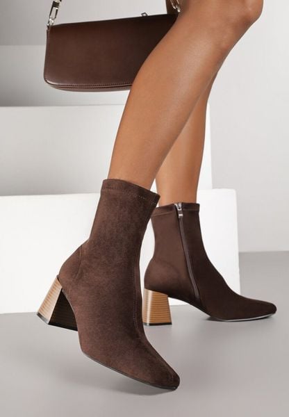 Brązowe Botki Vices na Stożku z Noskiem o Kwadratowym Kształcie Amiste