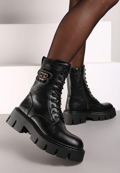 Czarne Botki na Grubej Podeszwie z Ozdobną Klamrą na Boku Irimare