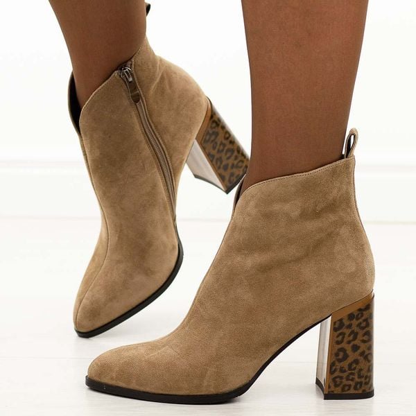 Khaki zamszowe skórzane botki damskie na słupku Giano Fabiani 9210