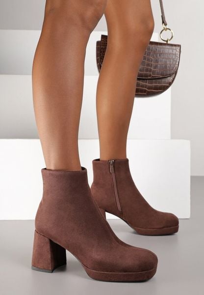 Brązowe Botki do Kostki Vices na Słupku z Imitacji Zamszu Dodvire