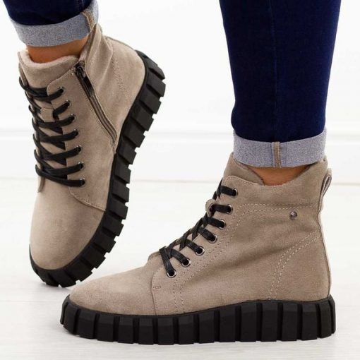 Khaki zamszowe botki damskie na traperze Potocki 19316