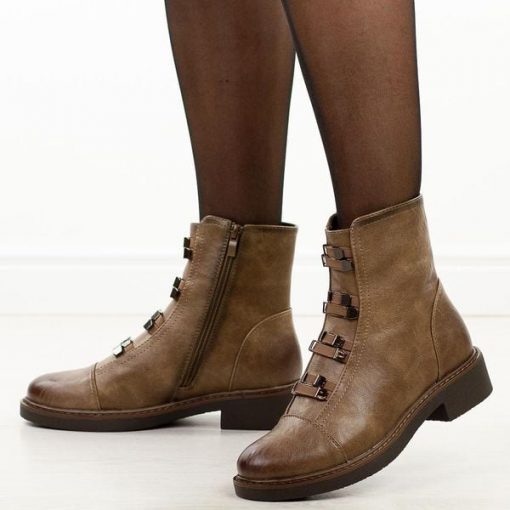Brązowe płaskie botki damskie M.Daszyński Sa252-16