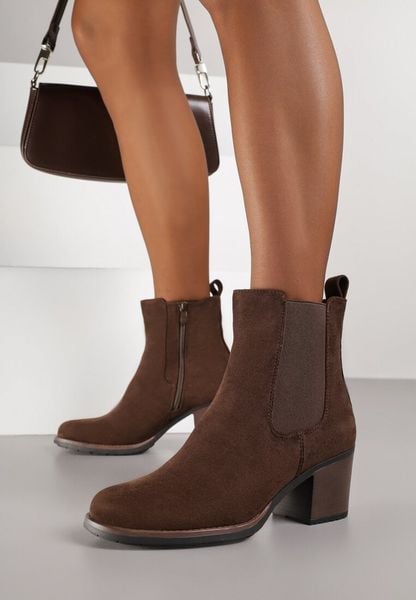 Brązowe Botki na Słupku w Stylu Sztybletów Acandrie