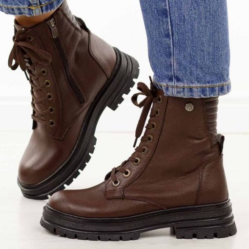 Brązowe skórzane botki damskie na traperze T.Sokolski Z25-345