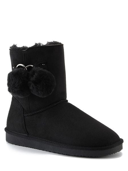 – wodoodporny materiał wierzchni o wyglądzie skóry welurowej („Microsuede”)- zapięcie: bez- noski: zaokrąglone- detale: ozdobne i formujące szwy, pompon- zapiętki: wzmocnione- wyściółka: ciepła- podeszwa: antypoślizgowa- kolor producenta: black