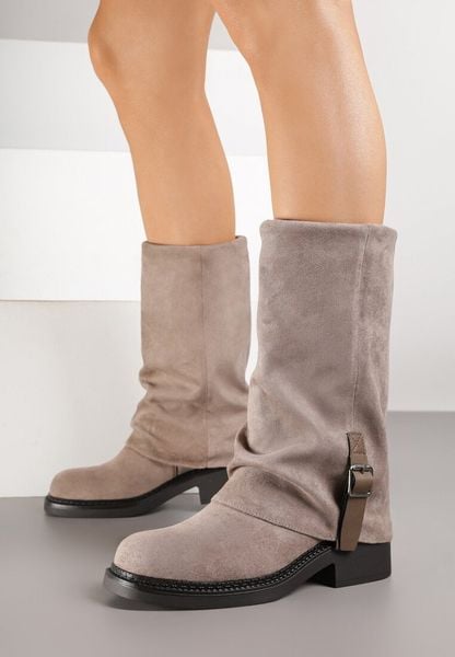 Beżowe Botki z Wywiniętą Cholewką i Paskiem z Klamerką Lunarise