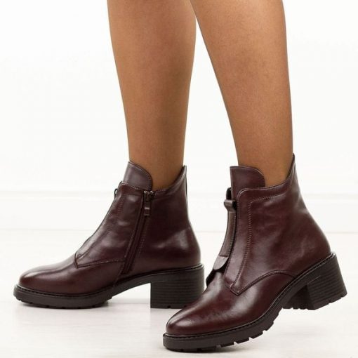 Bordowe skórzane botki damskie M.Daszyński 24172-6