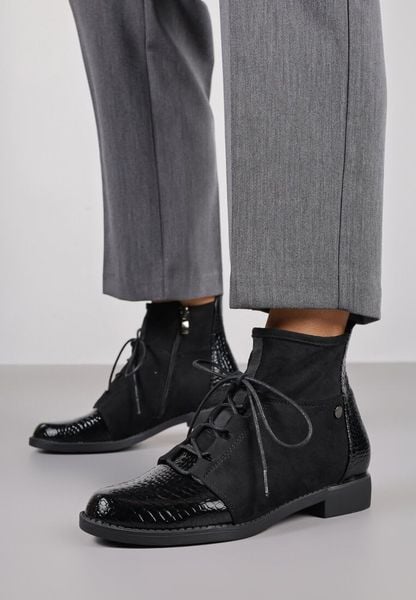 Czarne Botki Typu Trzewiki Vices z Tłoczonymi Wstawkami Afridda
