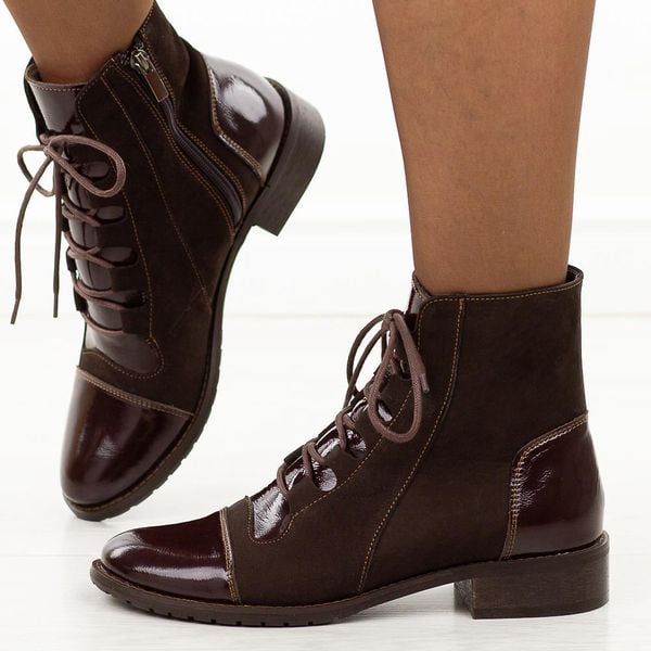 Brązowe skórzane Polskie botki damskie Deoni D086