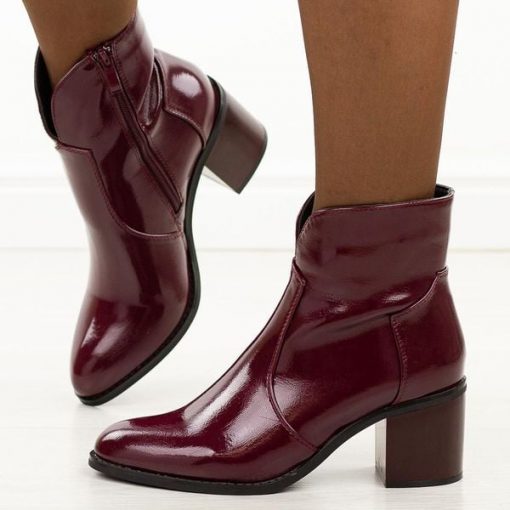 Bordowe lakierowane botki damskie na obcasie M.Daszyński 2337-13
